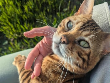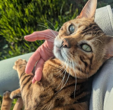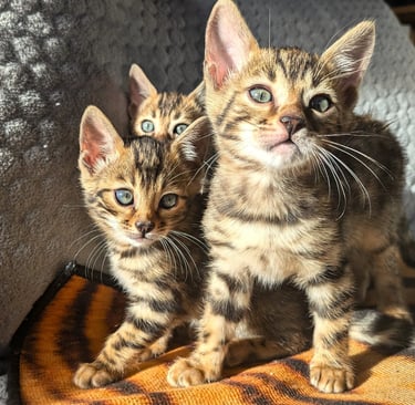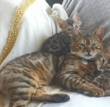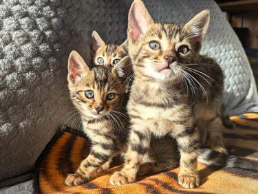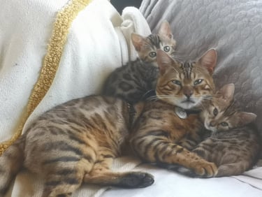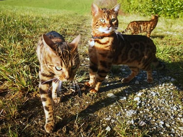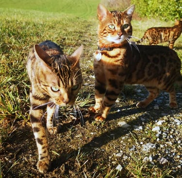 Entourés de nos compagnons à quatre pattes, nos chats domestiques évoluent librement dans un environnement calme et harmonieux, où chaque animal est traité avec amour et respect. Nous mettons un point d'honneur à offrir une ambiance authentique et chaleureuse, à la hauteur de la beauté et du caractère unique de nos Bengals.